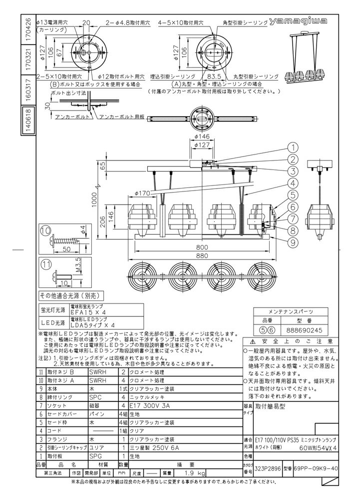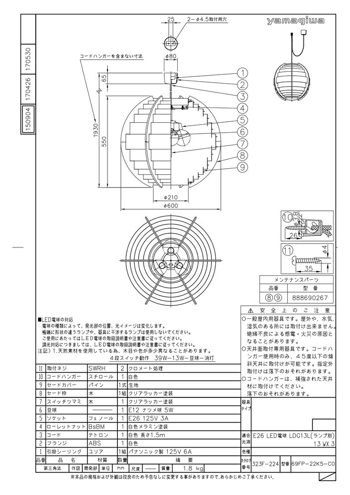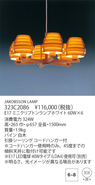 ヤマギワ「323C2086」シャンデリアライトJAKOBSSON LAMP/(ヤコブソンランプ)/(引掛けシーリング用)照明●●