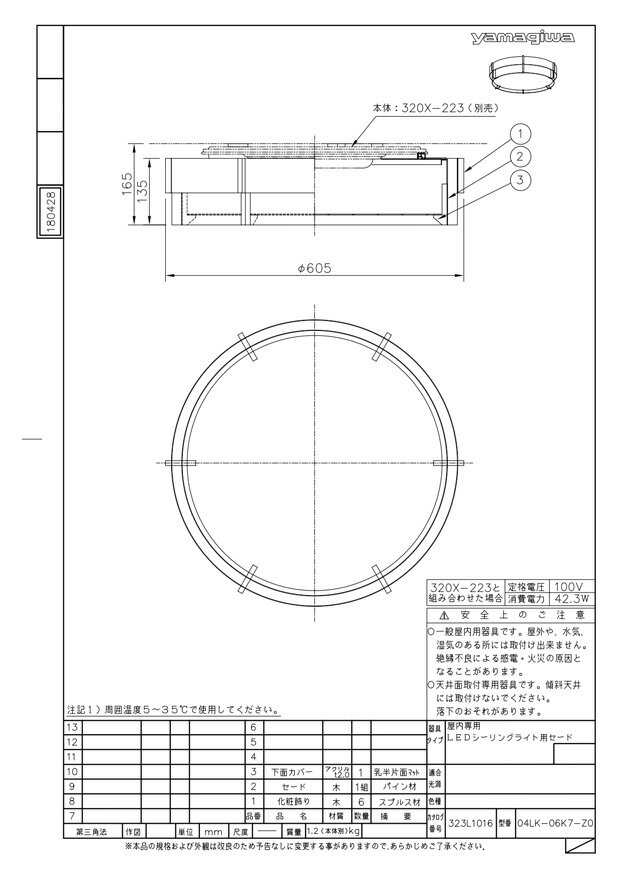 ヤマギワ「323L1016+320X-223」LEDシーリングライトJAKOBSSON LAMP/(ヤコブソンランプ)/(引掛けシーリング用)LED照明●●
