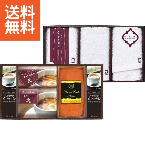今治製タオル(白の贅沢)&金澤パウンドケーキ・珈琲セット【ポイント10倍 送料無料】 夏ギフトセット☆食品 お菓子 詰め合わせ 父の日 お中元 入学祝い プレゼント 出産内祝い 結婚内祝い 出産祝い 結婚祝い 引き出物 お祝い お返し 香典返し 快気祝い お祝い返し 退職